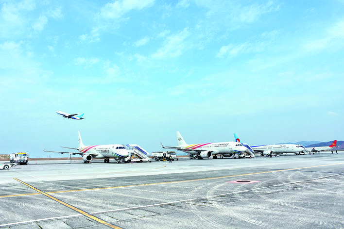 飞行区停机位增加至8个,跑道延长至2800米,新建跑道次降方向I类精密进近系统,扩建站坪和导航保护区,新建部分联络道。办公综合楼、航管楼(塔台)以及空管、消防工程均已投入使用。此外,还新增了跑道拦阻、智能围界安防系统,升级改造了空防设备,机场运行保障能力进一步提升。