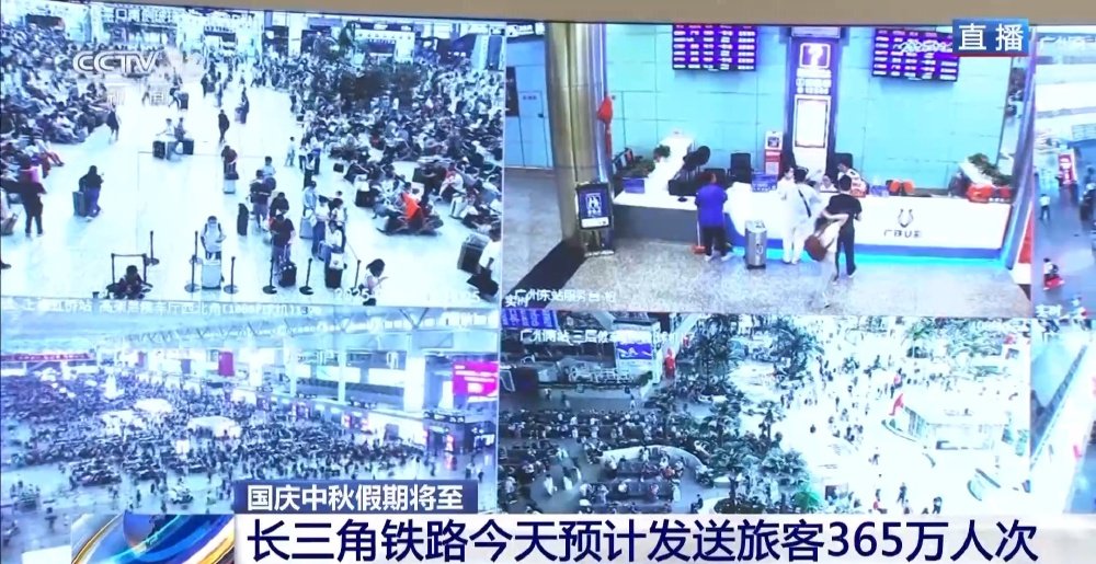 预计今天客流量最大的区域是长三角地区,今天覆盖苏浙沪皖三省一市的长三角铁路预计发送旅客365万人次。我们注意到这个数字较去年的9月30日增加了21.3万人次。