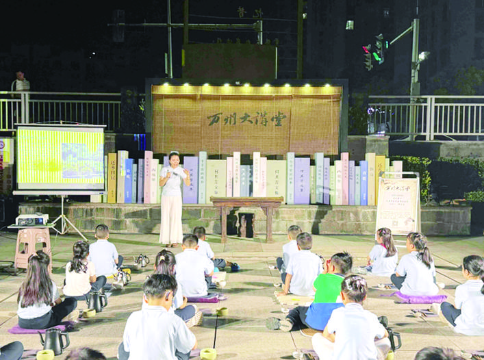沿江而建的南滨公园,每周五晚便成为知识的海洋。这里以“以讲为主、演讲结合”的形式,开展万州大讲堂系列活动。上周五,文史专家王教授以“万州:从古驿道到长江枢纽”为题,将这座城市的前世今生娓娓道来。台下,数百名听众或坐或站,专注聆听,不时低头记录。