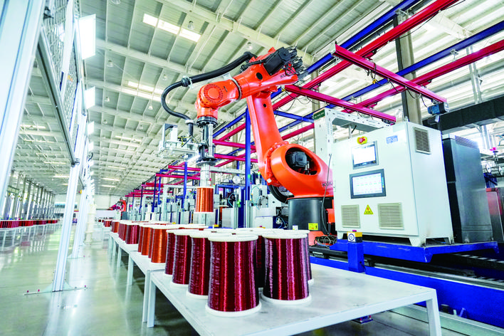 近日,万州经开区高峰园金龙电工生产车间,自动化生产线高效稳定运转。 据了解,今年金龙电工漆包圆线月发货量已突破900吨,创历史新高。 记 者 黄建桦 通讯员 杨思源 摄