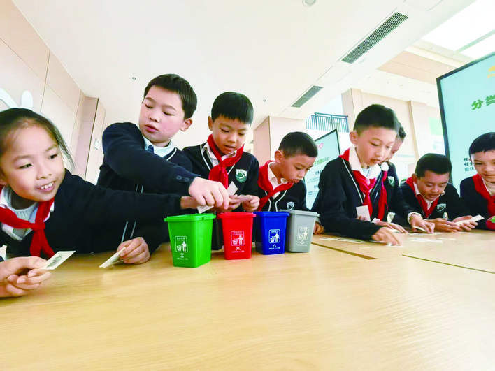 游园闯关活动将现场氛围推向高潮。操场内,“极速分拣”“环保拼图”“种子炸弹DIY”等八个游戏关卡前均排起长队,青少年们手持通关卡片,摩拳擦掌、跃跃欲试。“极速分拣”区,孩子们紧盯垃圾卡片飞速判断,10秒内精准投入对应垃圾桶,欢呼声此起彼伏;“环保拼图”区,大家合力拼接印有分类标识的拼图板块,在协作互动中巩固垃圾分类知识;“种子炸弹DIY”区人气很高,孩子们用废纸、腐殖土和花种子亲手制作可种植的“种子炸弹”,所有完成八项闯关任务的青少年,均领到了定制礼品和“环保小卫士”证书,脸上洋溢着自豪的笑容。