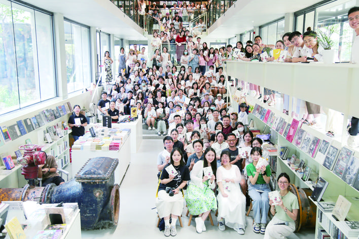先锋书店里,读者们参加诗人余秀华的新书分享会。(受访者提供)