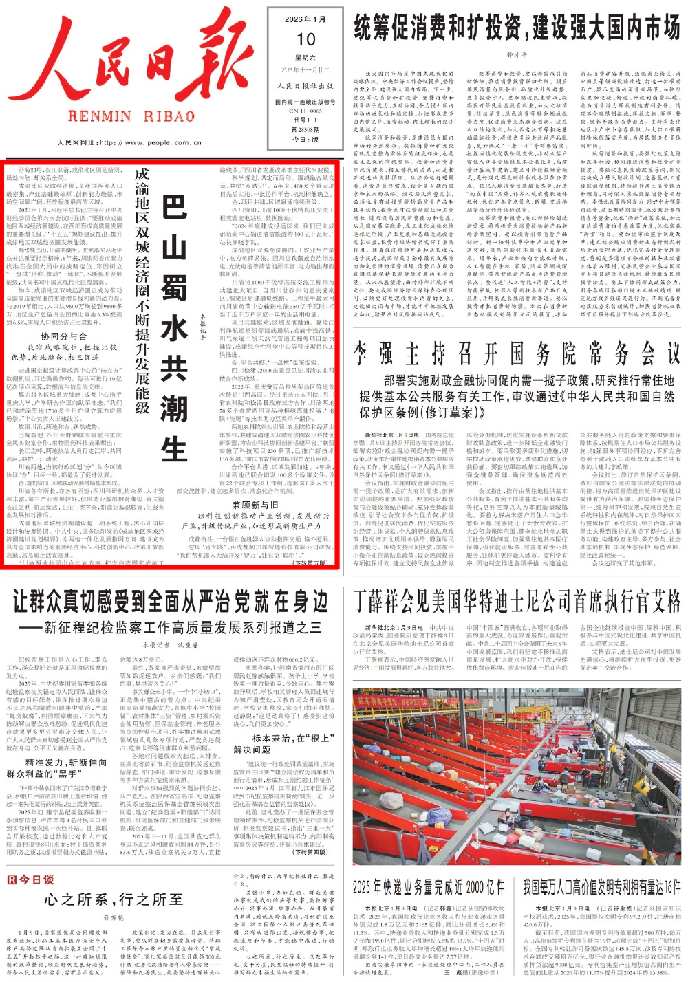 2020年1月,习近平总书记主持召开中央财经委员会第六次会议时强调:“要推动成渝地区双城经济圈建设,在西部形成高质量发展的重要增长极。”“十五五”规划建议提出,提升成渝地区双城经济圈发展能级。