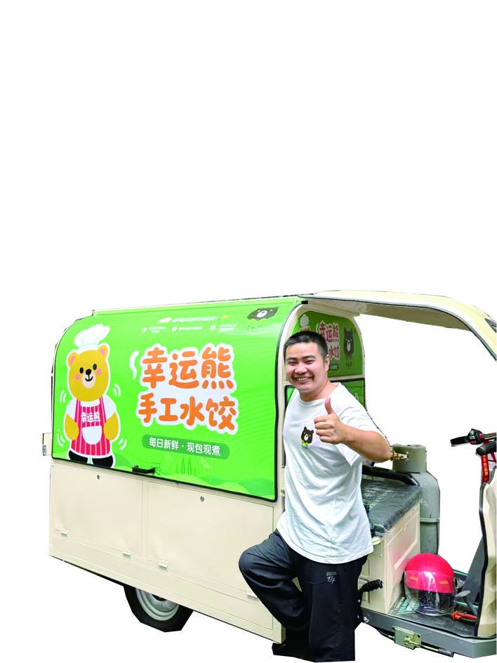 “白菜饺来咯!”清亮的招呼声中,熊军将刚出锅的水饺端给客人。直到这时,许多人才注意到,那个两眼清亮、精神饱满的小伙,竟是“跳”着走来的。