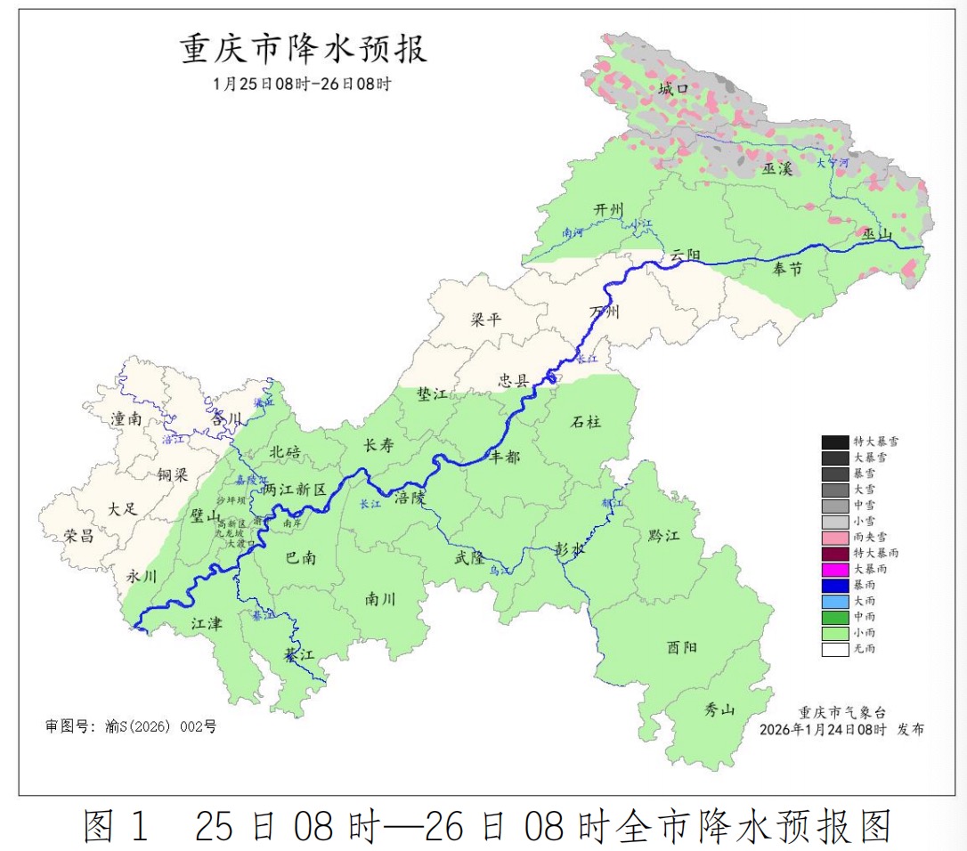 25日白天到夜间,大部地区阴天转间断小雨或零星小雨,海拔1800米以上地区有雨夹雪或小雪,气温1~12℃;中心城区阴天转零星小雨,气温8~11℃。