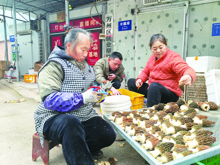 分拣羊肚菌。