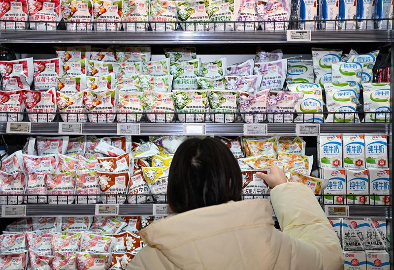 ▲2月6日,顾客在天津一家超市选购海河牛奶。新华社记者 赵子硕 摄