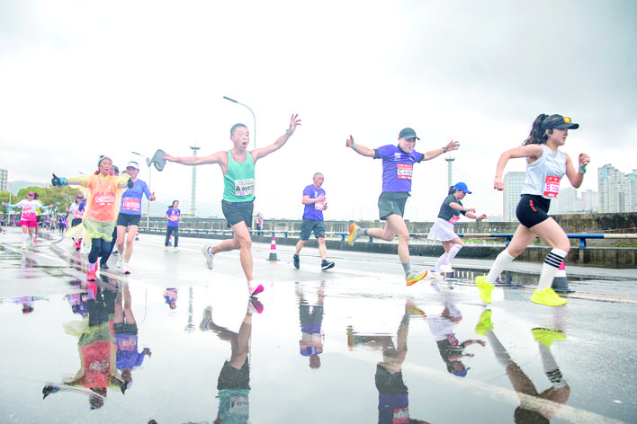 ▲参赛选手跑过北滨商圈。 特约摄影 游晓铭 摄