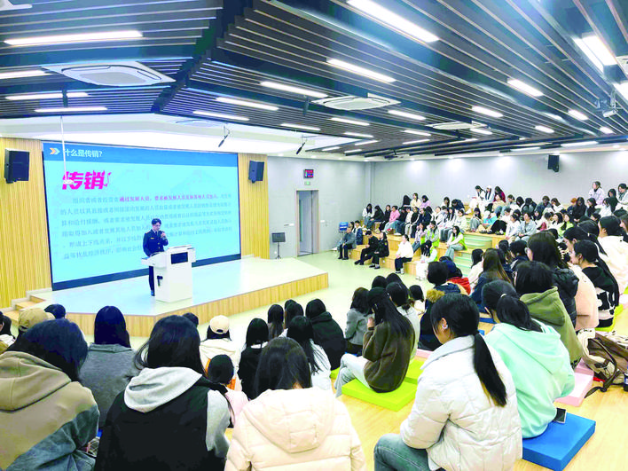 本报讯 (记者 李静 文/图)“同学们,你们知道如何甄别和远离传销行为吗?”近日,在重庆幼儿师范高等专科学校的课堂上,一连串贴近青年学生的互动提问,让现场气氛立刻活跃起来。万州区市场监管局、万州区消委会联合中国人民银行万州分行,紧扣重庆市第六个文明行为促进月主题,将普法宣传、维权指导、诚信教育、反假货币、防范利用数字人民币实施的传销诈骗等知识融为一体,为在校大学生送上了一堂实用、生动、深刻的消费维权必修课。