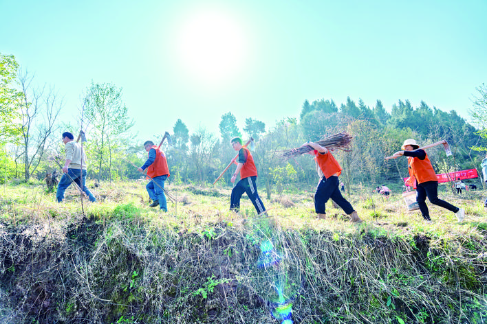 太龙镇太阳溪社区,志愿者开展义务植树。记者 黄建桦 摄