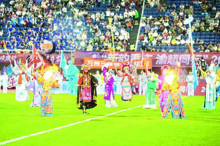 图片说明 ①川剧表演引爆渝超赛场。 记者 侯本艳 摄 ②万州杂技团春晚表演。记者 侯本艳 摄 ③川东盘子《幺妹邀你万州来》。 记者 黄建桦 摄 ④三峡歌舞团年轻演员展现青春活力。记者 侯本艳 摄