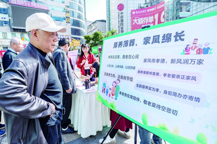 演出之外,活动现场还设置了政策解读、普法宣传、生态殡葬、移风易俗互动等多个展台。市民可以做香囊、画风筝、写家风寄语,也可以咨询惠民政策、参与文明答题。活动还同步进行网络直播、线上话题互动,“绿色清明”“春风满巴渝 文明润万州”等话题在网络上引发讨论,许多年轻人也积极参与文明祭扫倡议。
