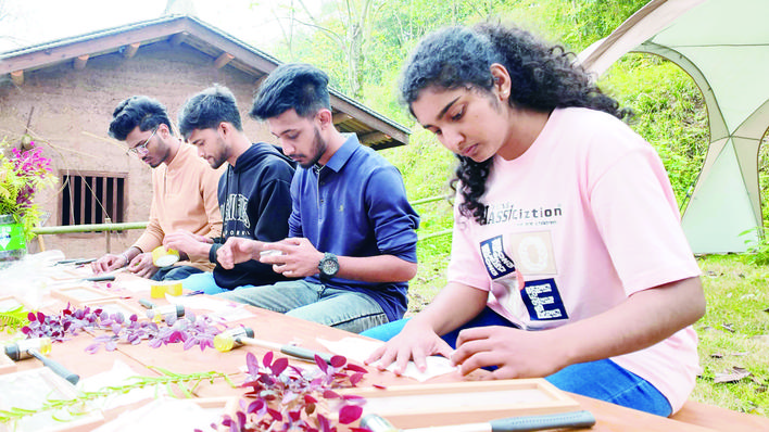 在老师的耐心指导下,留学生们纷纷挑选自己心仪的植物叶片,小心翼翼地开始创作。他们用小锤轻轻敲打,让植物的纹理和色彩一点点渗透到布料上,再经过染色等步骤,一幅幅独一无二的作品逐渐成型。每一块布料,都仿佛是一个小小的艺术世界,承载着留学生们对传统技艺的探索与热爱。