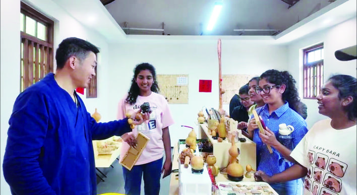 留学生季亚拿着自己精心绘制的葫芦,脸上洋溢着自豪的笑容,她说:“葫芦绘画就像一个神奇的魔法世界,让我有机会自由表达自己的想法。我画了自己的形象,想把它送给我的老师,希望他能感受到我的心意,喜欢我的作品。”