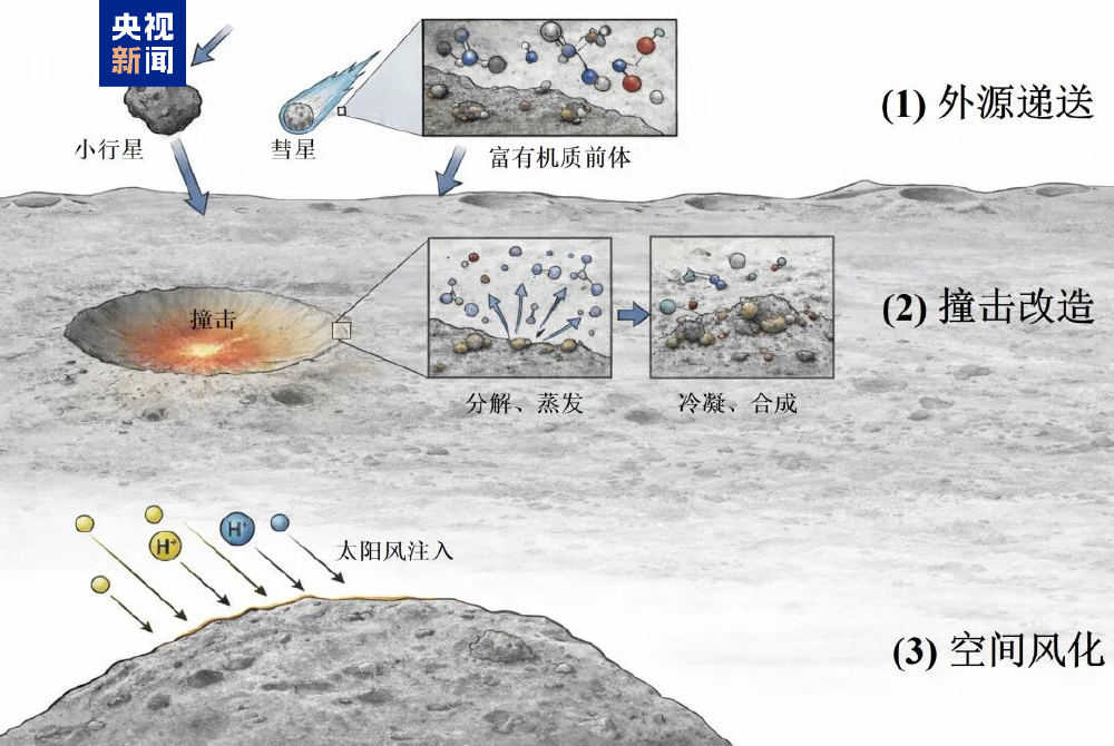 ▲月壤中有机质形成和演化示意图
