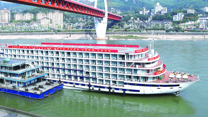 五星级游轮“重轮·长江云帆”停靠在重庆港17码头。