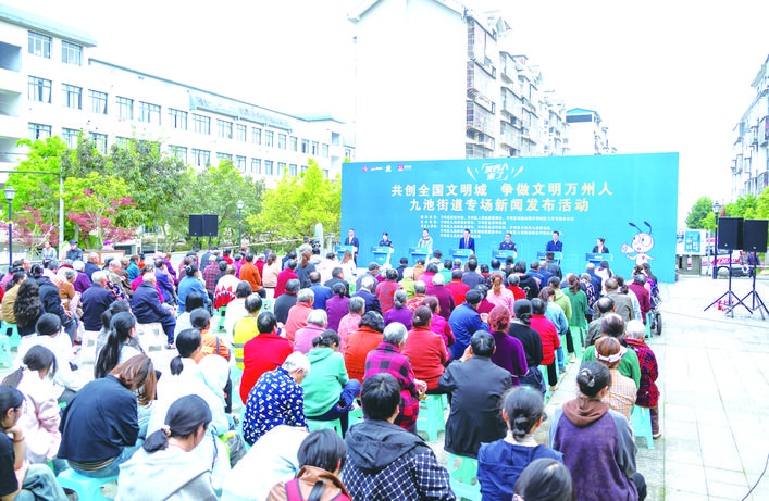 万州手机台讯 (记者 陈星)4月16日,“发言人来了——共创全国文明城 争做文明万州人”九池街道专场新闻发布活动在戴家岩社区党群服务中心举办。活动以面对面交流、零距离答疑的形式,让文明创建工作走进群众、贴近民心,切实提升创文知晓度与参与度。