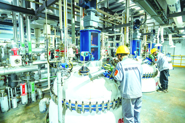 4月15日,万州经开区九龙园普佑制药车间,医药中间体及原料药项目生产线正在试生产,百余套主设备同步运行,生产4个系列11种原料药及中间体,产品主要销往浙江、江苏等地区。