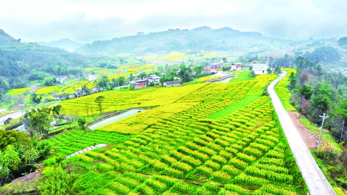 春和景明,万物勃发。甘宁镇玫瑰香橙基地里,果农采摘柑橘;龙沙镇稻渔综合种养田间,稻苗青青、农户巡田管护;郭村镇就业帮扶车间内,机器轻鸣,返乡群众专注作业,用双手筑牢幸福生活……