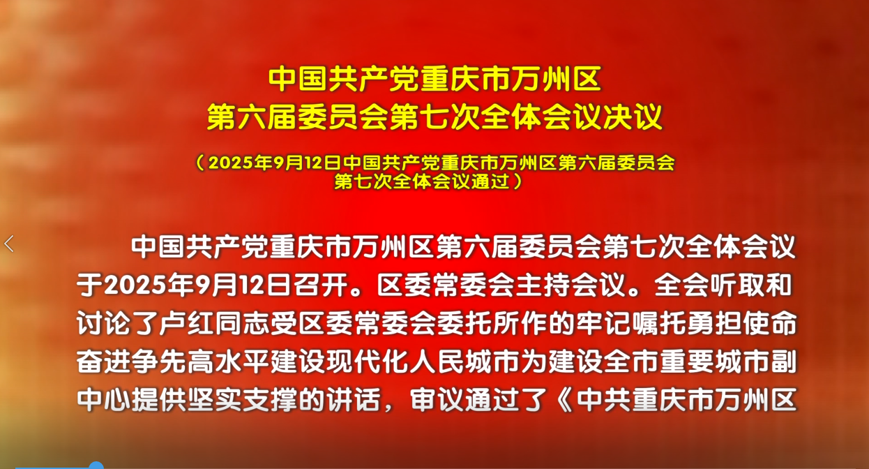 中国共产党重庆市万州区第六届委员会第七次全体会议决议