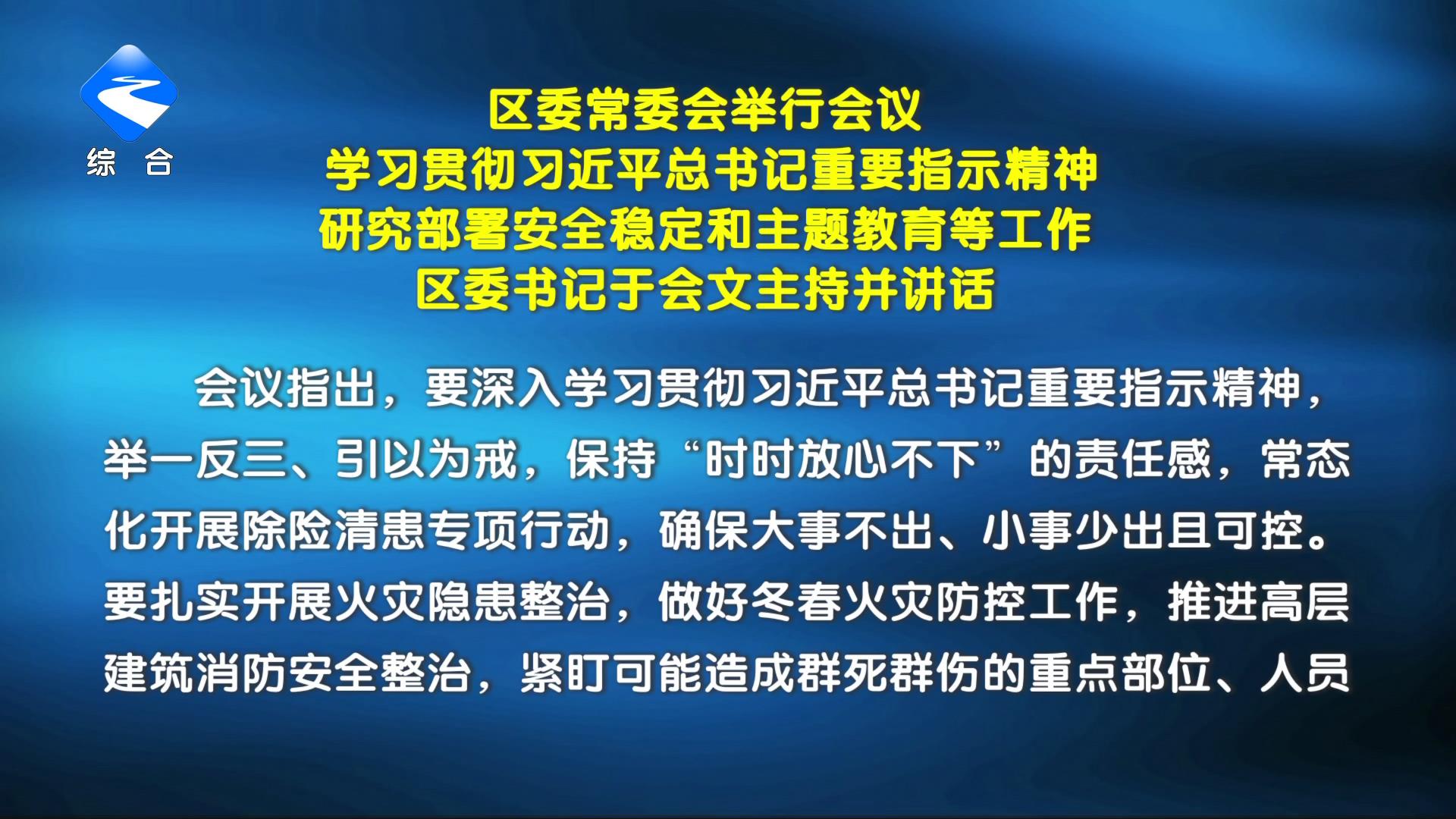 区委常委会举行会议 学习贯彻习近平总书记重要指示精神 研究部署安全稳定和主题教育等工作