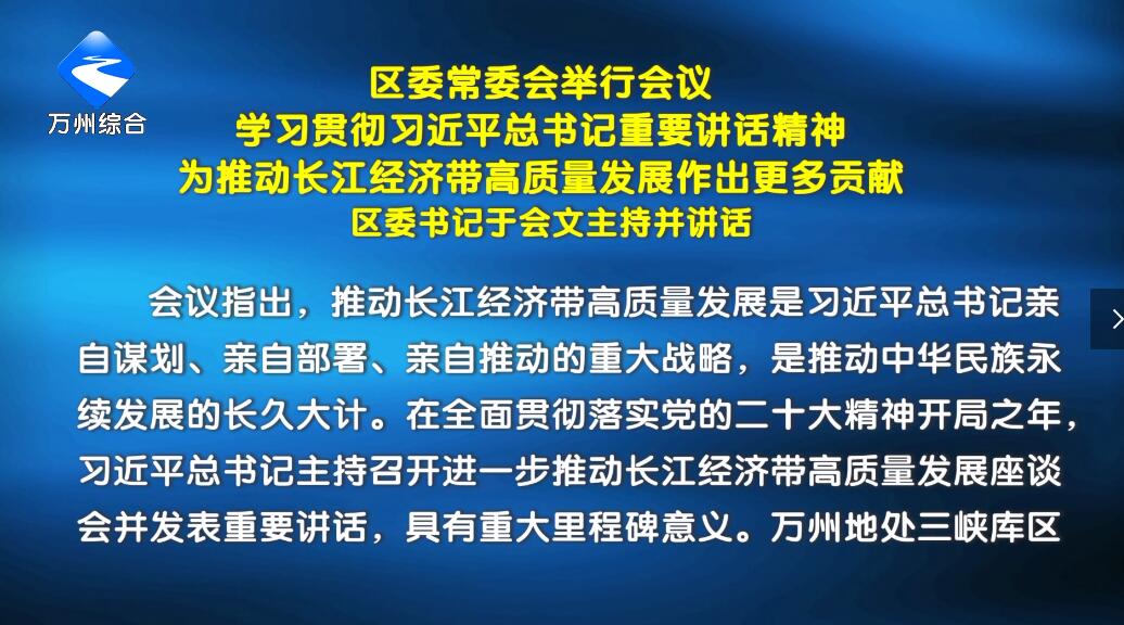 区委常委会举行会议 学习贯彻习近平总书记重要讲话精神 为推动长江经济带高质量发展作出更多贡献 区委书记于会文主持并讲话