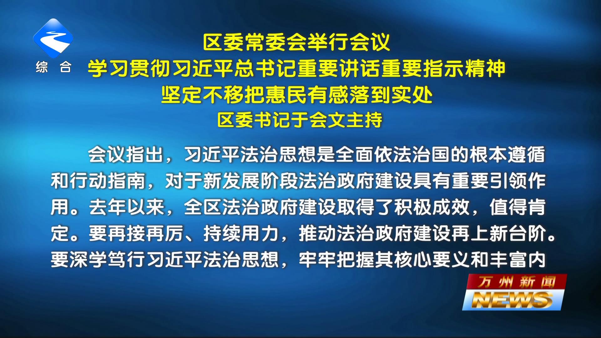 区委常委会举行会议 学习贯彻习近平总书记重要讲话重要指示精神 坚定不移把惠民有感落到实处 区委书记于会文主持