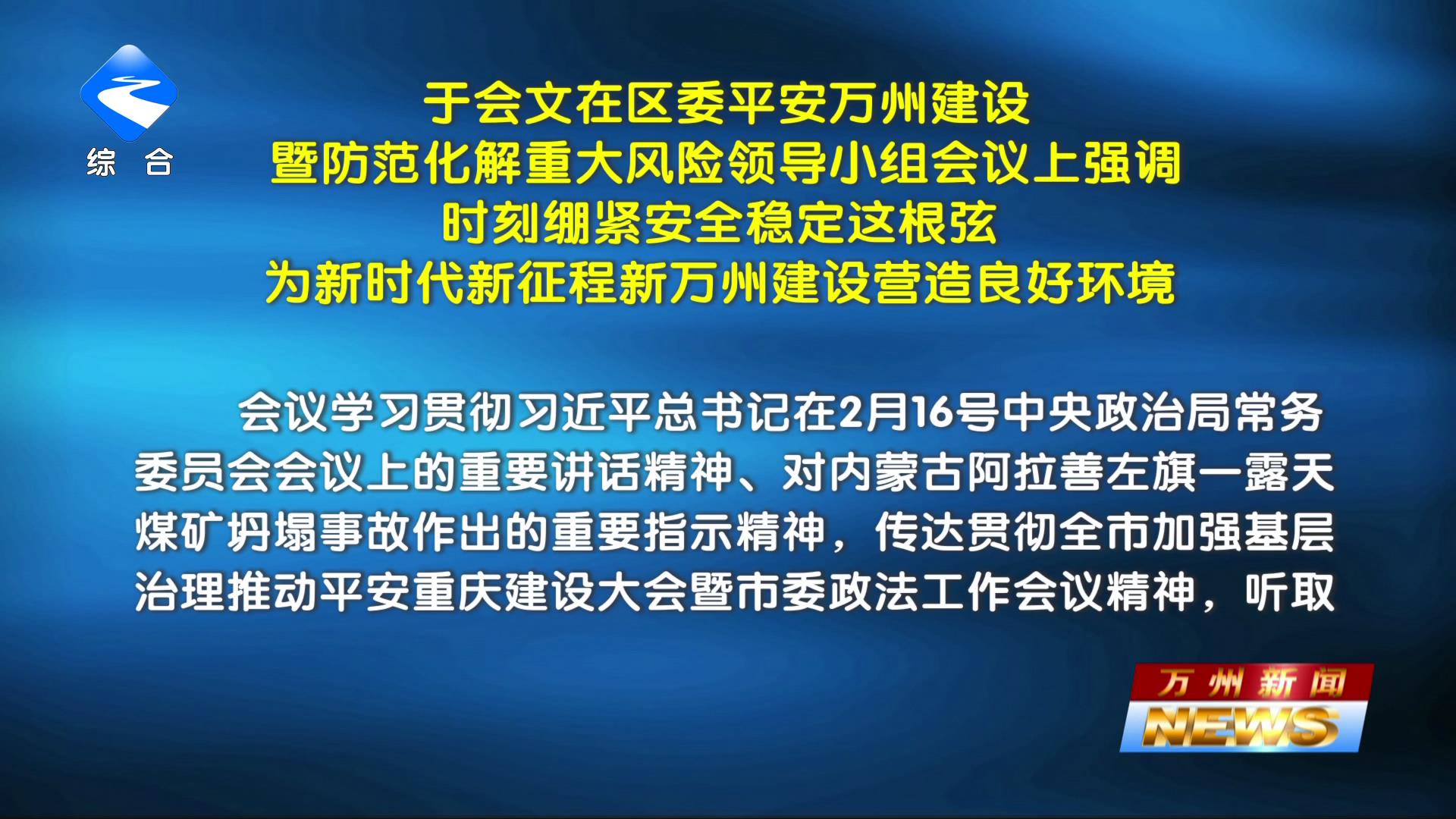 于会文在区委平安万州建设暨防范化解重大风险领导小组会议上强调 时刻绷紧安全稳定这根弦 为新时代新征程新万州建设营造良好环境 聂红焰出席