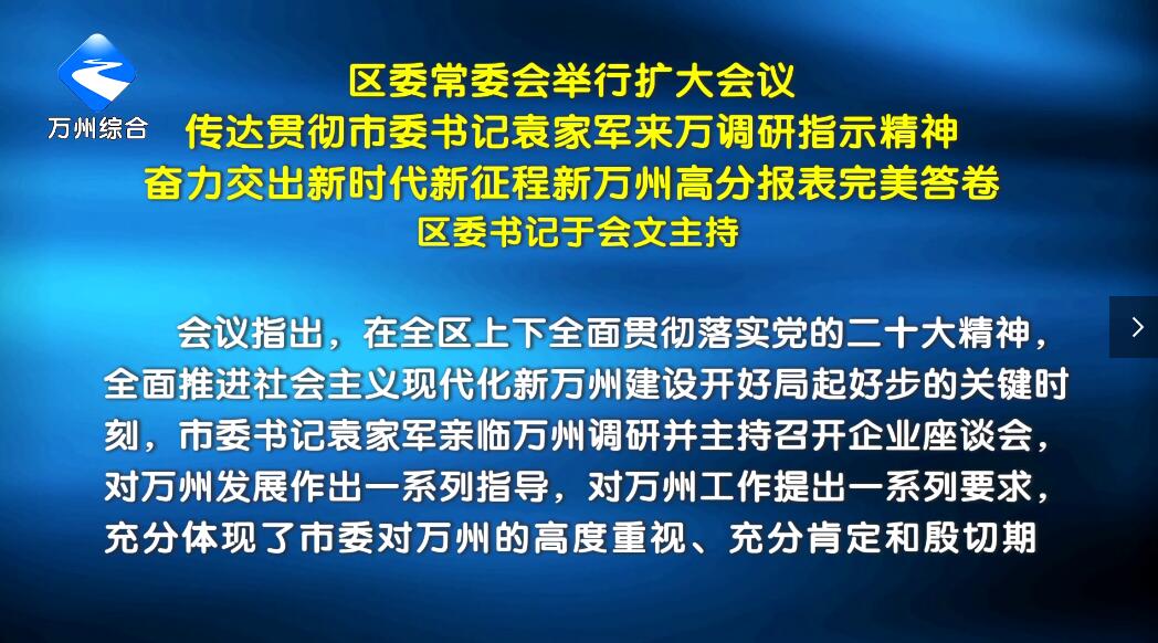 区委常委会举行扩大会议 传达贯彻市委书记袁家军来万调研指示精神 奋力交出新时代新征程新万州高分报表完美答卷 区委书记于会文主持