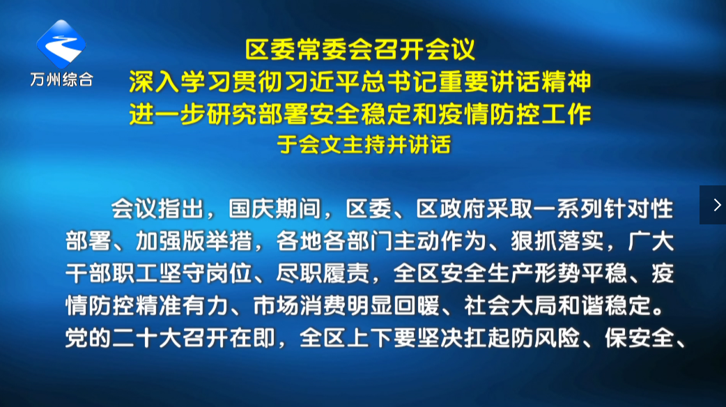 区委常委会召开会议 深入学习贯彻习近平总书记重要讲话精神 进一步研究部署安全稳定和疫情防控工作 于会文主持并讲话
