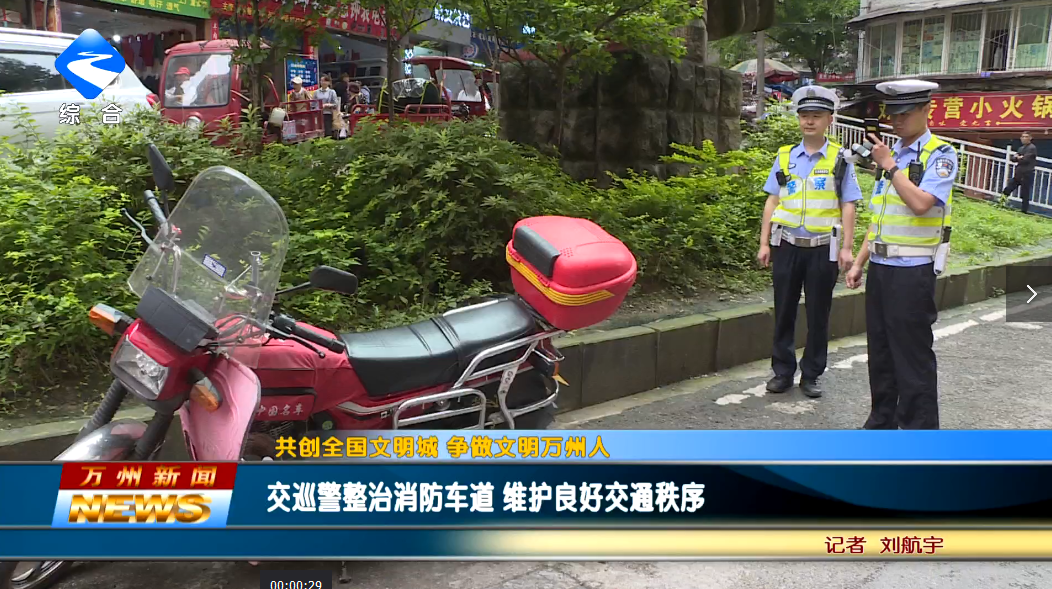 【共创全国文明城_争做文明万州人】交巡警整治消防车道_维护良好交通秩序