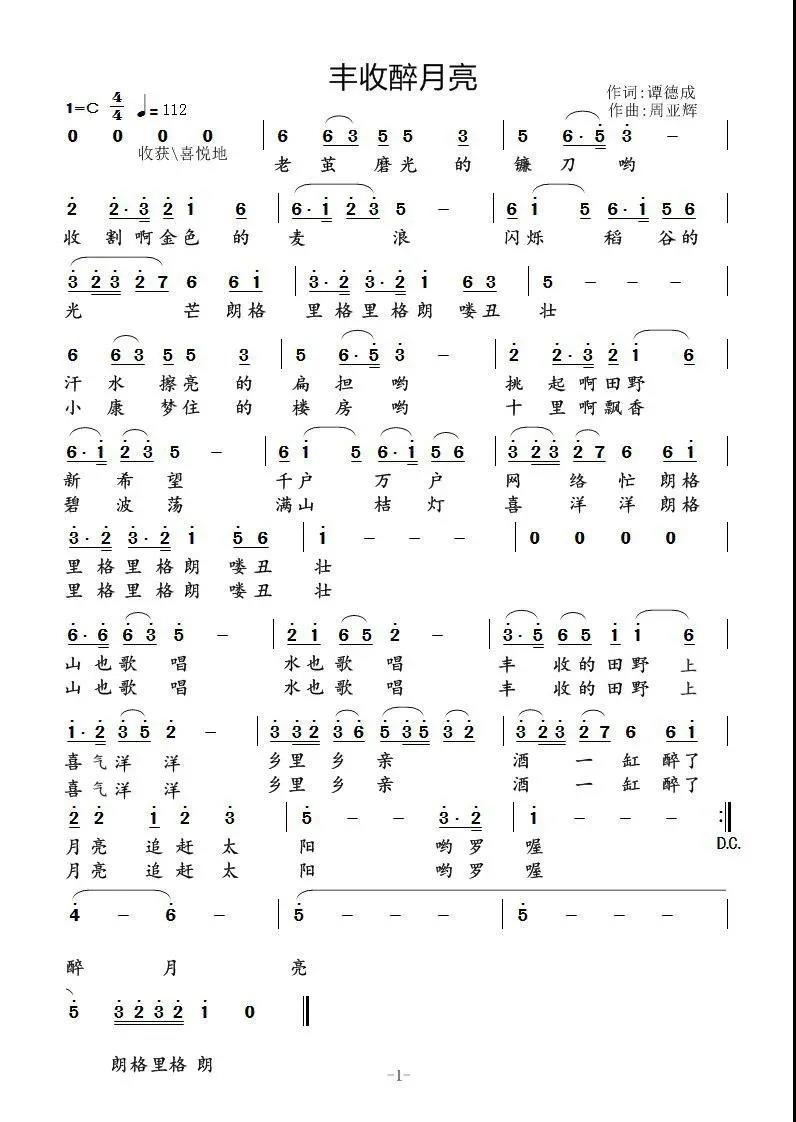 “在2018年,为了纪念第一个中国农民丰收节,我和重庆作曲家周亚辉一同创作了歌曲《丰收醉月亮》,用来传递农民丰收的喜悦。”词作者谭德成表示,当时创作灵感来源于看到农民用镰刀收割庄稼,他觉得“镰刀”代表着丰收,以此灵感创作了这首歌曲。另外,他还认为,农民的丰收不光是物质上的丰收,更多是精神上的收获感、幸福感。