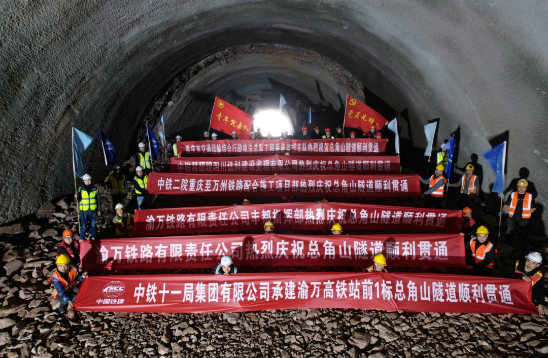 渝万高铁站前1标总角山隧道顺利贯通,